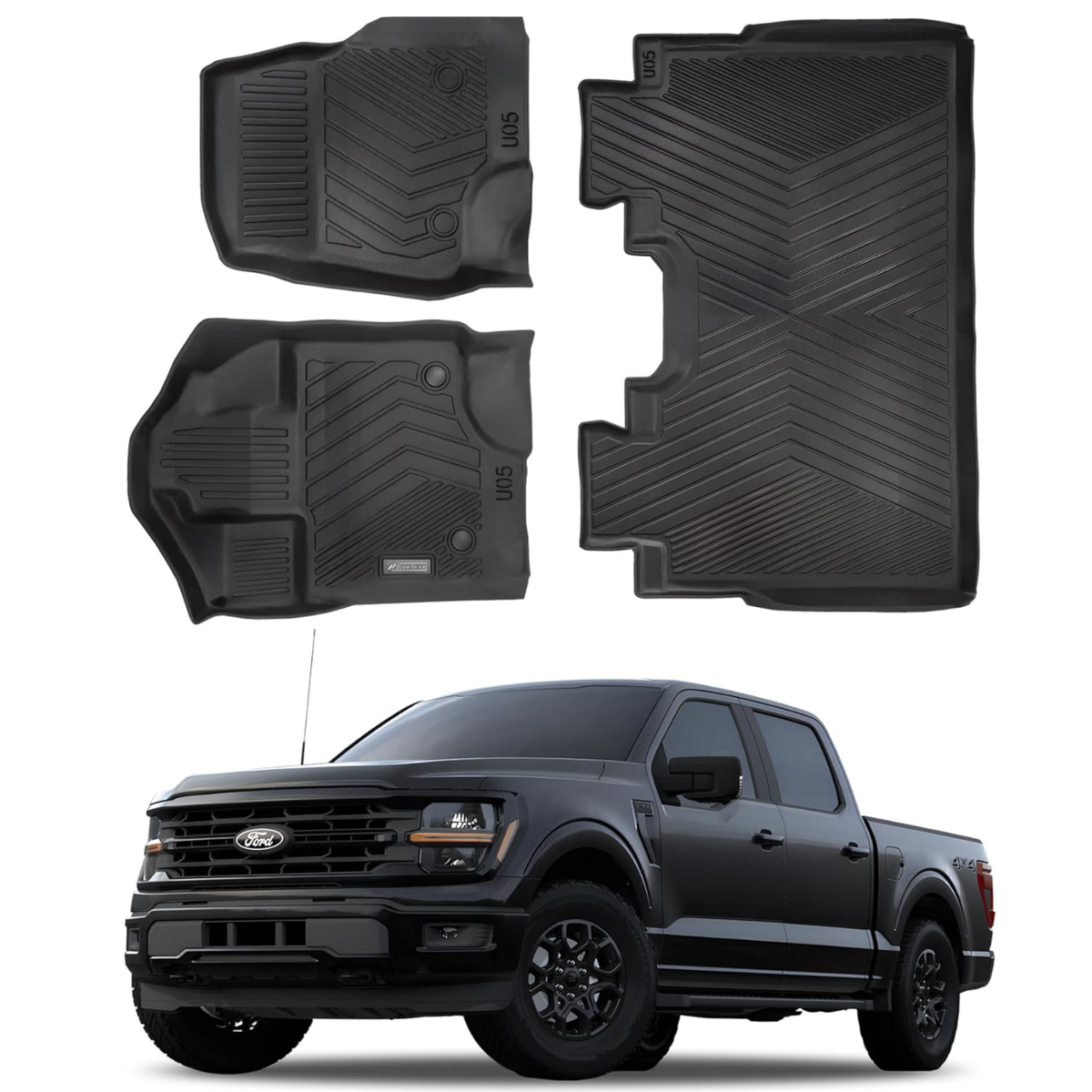 Mud, water, snow, dust—no matter where your truck goes, these mats will keep the cabin clean, safe, and scratch-free. Easy to wash, odorless, and long-lasting—it's the perfect rugged upgrade for your F-150.